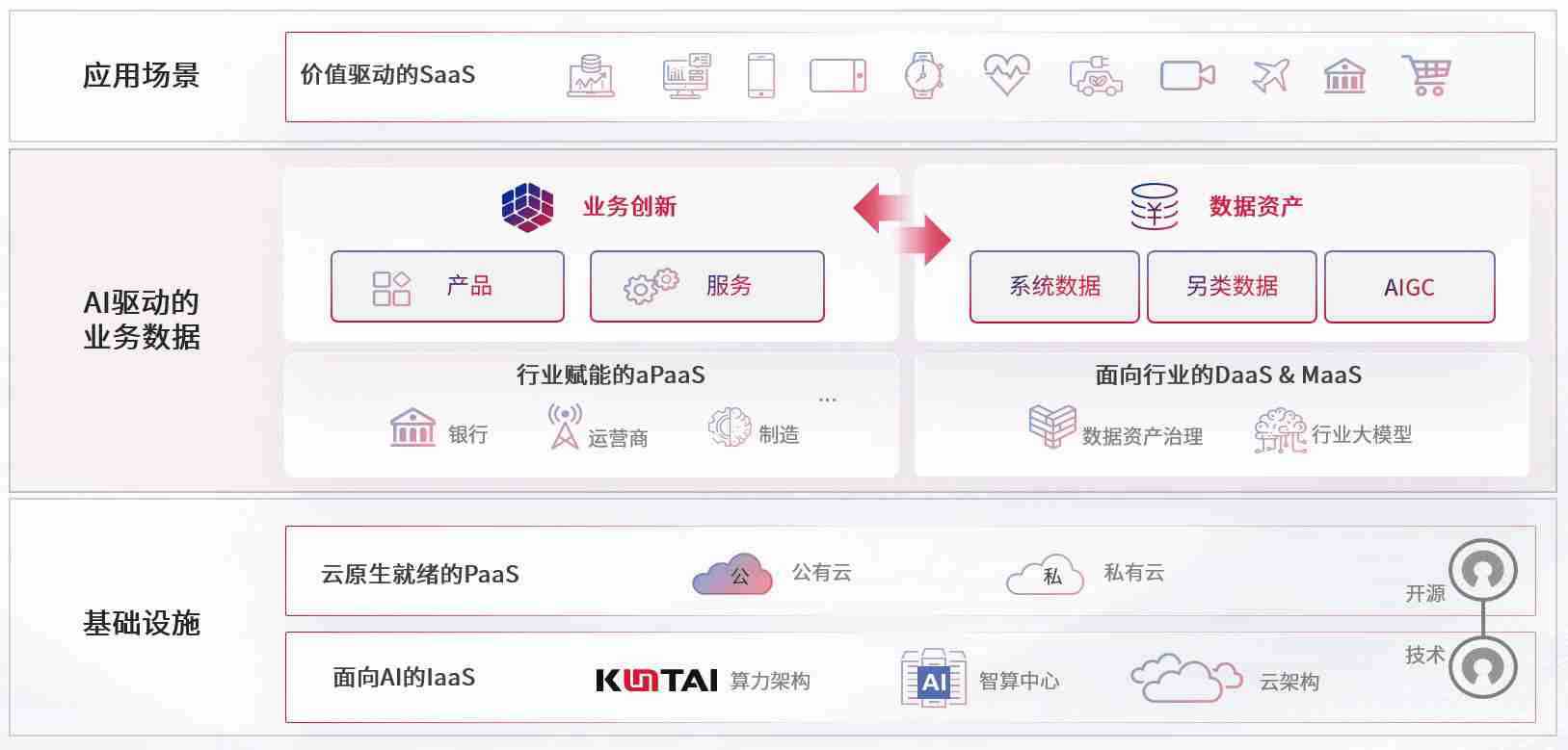 数字时代,,围绕企业数字化转型的关键要素,,z6mg·人生就是博数码开创性的提出数云融合战略和技术体系框架,,,着力在云原生、、、、数字原生、、、AI原生和信创产业上架构产品和服务能力,,,为处在不同数字化转型阶段的快消零售、、汽车、、、金融、、医疗、、政企、、、、教育、、运营商等行业客户提供泛在的敏捷IT能力和融合的数据驱动能力,,,构建跨界融合创新的数字业务场景和新业务模式,,,,助力企业级客户建立面向未来的核心能力和竞争优势,,,全面推动社会的数字化、、、、智能化转型升级。。。。