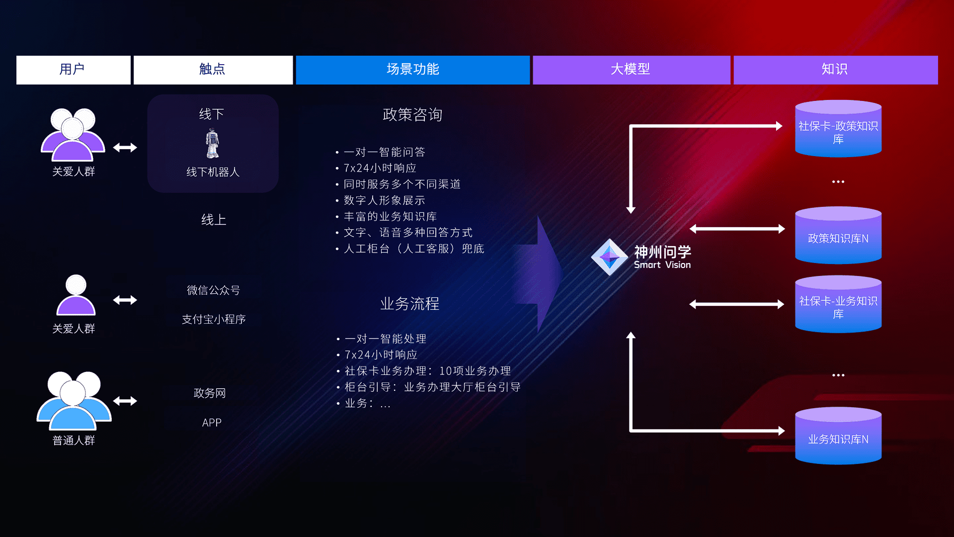在服务大厅部署客服机器人,,,在线上应用和小程序配置客服数字人,,,724小时为群众解答常规问题,,,,客服机器人无法处理的,,,,转现场人工处理。。。。